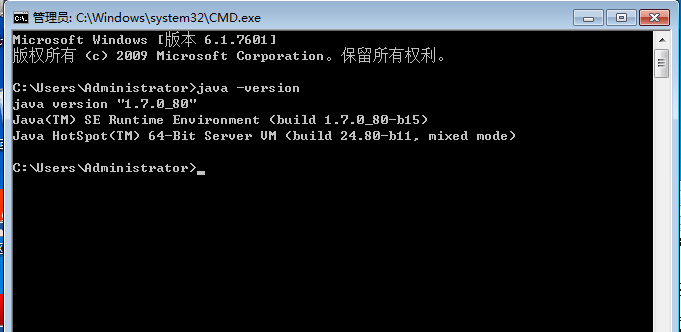 检测是否已经配置成功。运行cmd 输入 java -version (java 和 -version 之间有空格)