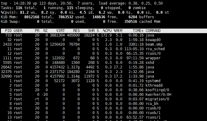 最近一段时间 某台服务器上的一个应用总是隔一段时间就自己挂掉 用top看了看 从重新部署应用开始没有多长时间CPU占用上升得很快