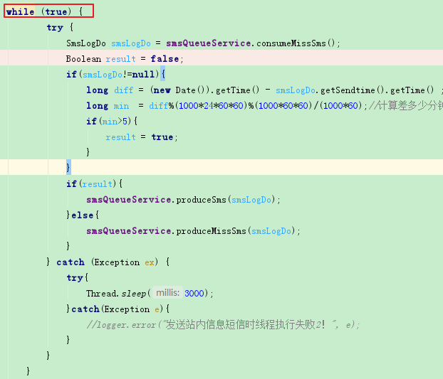SmsLogDo smsLogDo = smsQueueService.consumeMissSms();