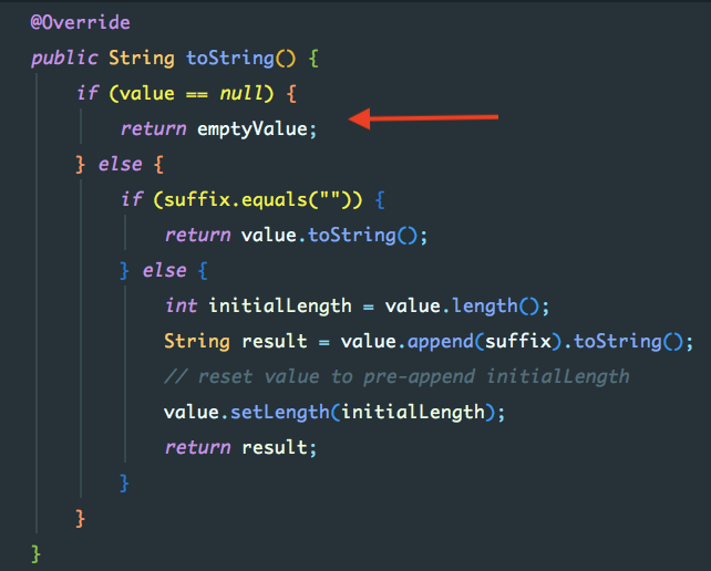 先是判断非空. 然后就开始赋值了. emptyValue被赋值为了prefix+suffix . 这段代码就是这么简单... 其中: