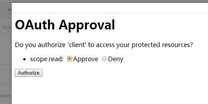 接下来点击 Request Token 按钮,在弹出的登陆界面中输入我们之前在 SecurityConfig 中配置的用户信息,选择 Approval 并点击 Authorize 按钮,即可获取 access_token :
