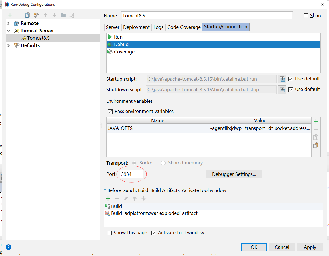 我们可以发现这是IDEA的debug模式指定的调试端口:使用Debug模式启动tomcat时会使用3934端口。