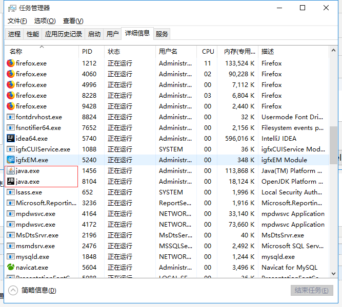 关闭JB标志的java.exe进程,该进程关闭不会影响IDEA的运行。