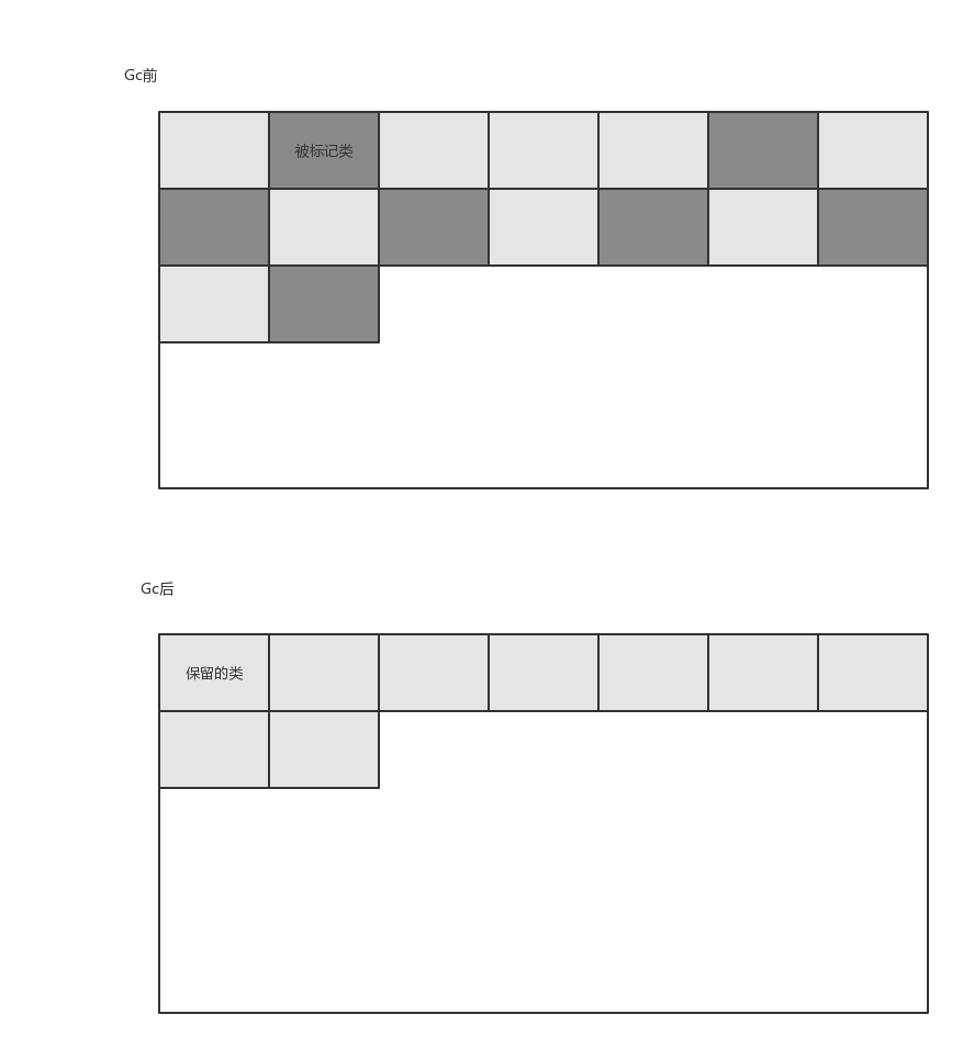 标记/整理算法很好理解,主要也就是”标记“,”整理“两个步骤,先将要回收的对象标记,然后让存活对象向着一端移动,最后将边界以外的内存,然后Gc完成。