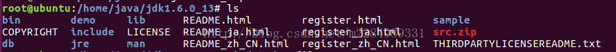 执行安装命令:./jdk-6u35-linux-i586-rpm.bin,注意斜杠前面那个点,别丢了,此时可能会出现权限不够的问题,修改一下即可,命令为:chmod 755 jdk-6u35-linux-i586-rpm.bin ,然后继续执行上述安装命令。安装完成后会出现下图所示的文件目录:(其他不相干文件我都删了)