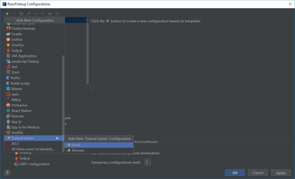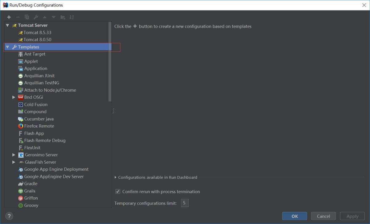 它会自动给我们选上刚创建的项目,你也可以点击项目右边的+号-号添加或者删除要部署的项目,点击Apply应用配置,点击OK按钮