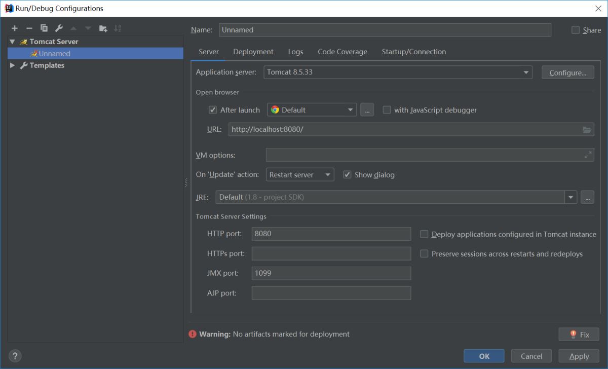 下面有一个Warning警告,告诉我们没有部署项目,接下来我们部署项目