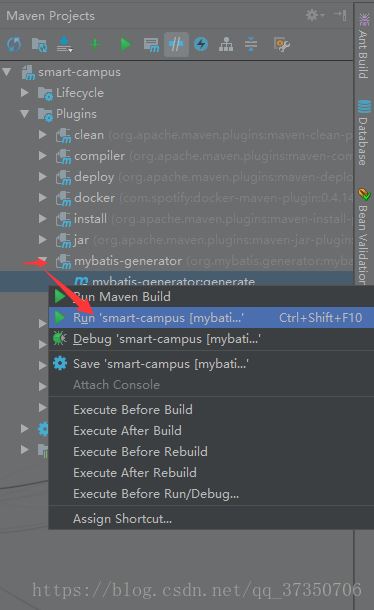在右侧打开maven面板在Plugin下打开Mybatis-generator下的mybatis-generator:fenerate