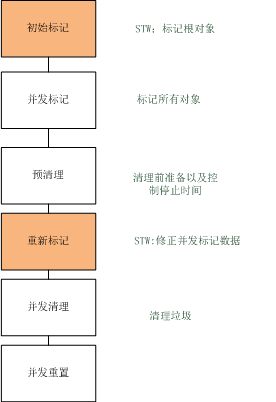 根据标记清除算法,初始标记、并发标记和重新标记都是为了标记出需要回收的对象。并发清理则是在标记完成后,正是回收垃圾对象。并发重置是指在垃圾回收完成后,重新初始化CMS数据结构和数据,为下一次垃圾回收做好准备。