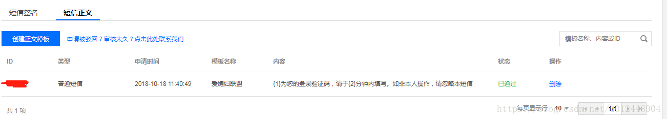 3:配置短信签名、短信正文模板,并审核通过(为了方便我就用微信公众号)