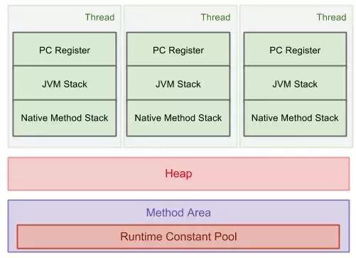 我们知道的JVM内存区域有:堆和栈,这是一种泛的分法,也是按运行时区域的一种分法,堆是所有线程共享的一块区域,而栈是线程隔离的,每个线程互不共享。
