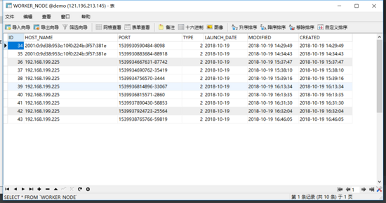 我们每启动一次 Spring Boot工程,其即会自动去 MySQL数据的 WORKER_NODE 表中插入一行关于工作节点的记录,类似下图所示: