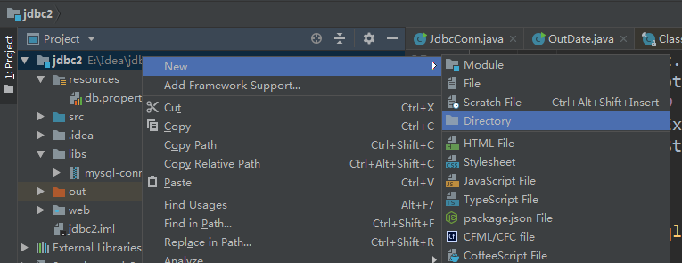 2. 右键点击新建的项目名,选择创建文件目录(Directory),一般properties文件夹命名应为resoures;