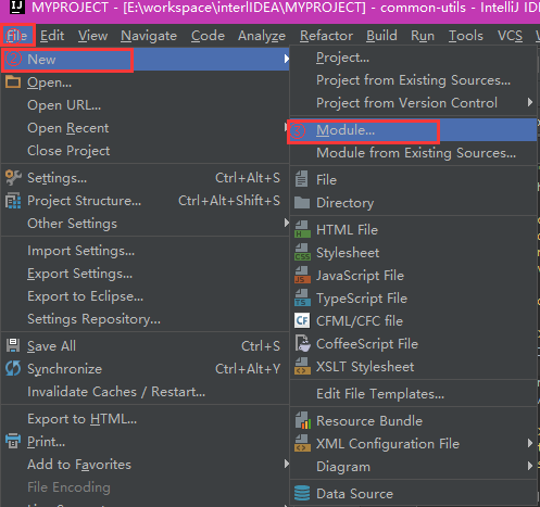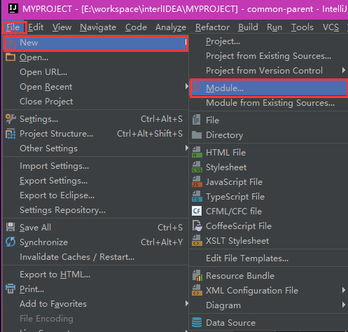 4. 选择File–>New–>Module,进入New Module页面: