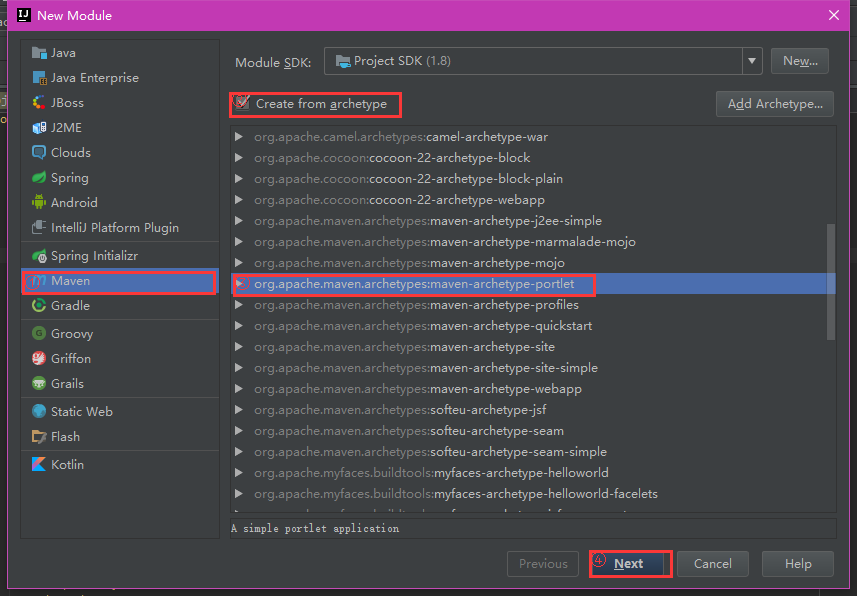 5. 在New Module页面,按如下步骤操作: