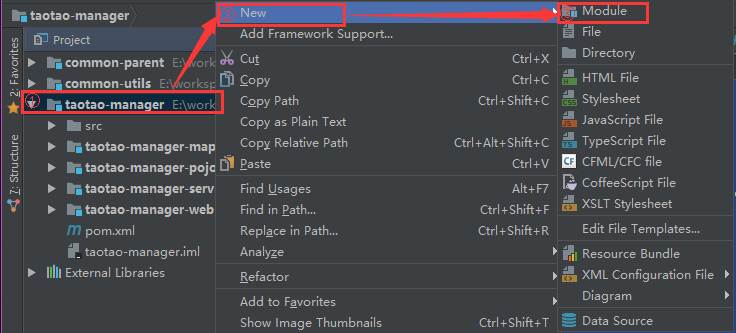 右键点击taotao-manager,选择New,Module,