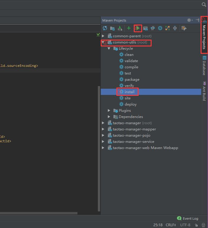 出现错误,可能是common-parent和common-utils没有安装到本地仓库,出现的错误是找不到common-utils的jar包,那就需要我们安装一下。