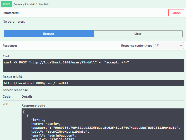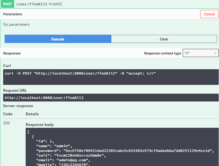 启动系统,访问 http://localhost:8080/swagger-ui.html ,分别测试两个接口,成功返回数据。