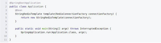 在@Configuration或者集成了这个注解的注解标识的类中声明一个Redis的bean,本例是在入口类上声明的Bean: