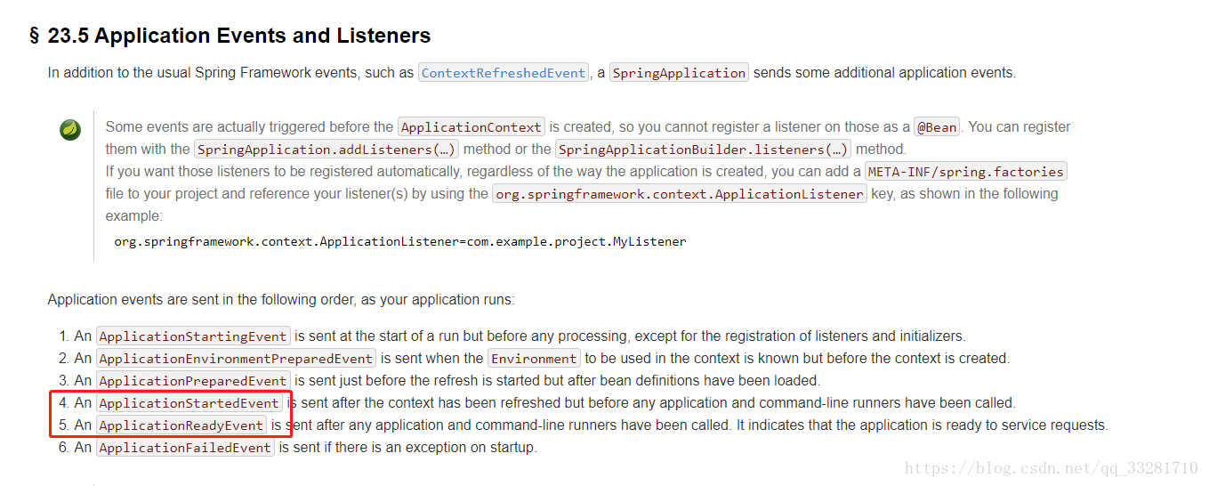 ApplicationListener接口的泛型类可以使用ApplicationStartedEvent和ApplicationReadyEvent