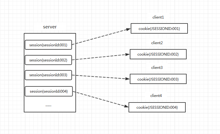 简单点说,每一个session对象都有一个sessionId,而在cookie数组中,又一个元素叫做JSESSIONID,服务器将session对象的sessionId,以名称叫做JSESSIONID,值为sessionId的形式存入cookie数组中,这样cookie和session就发生了关联。