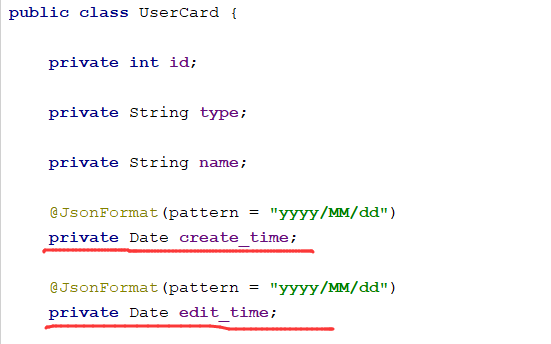 @JsonProperty:将该字段的名称在转换成json格式后以该名称显示;
