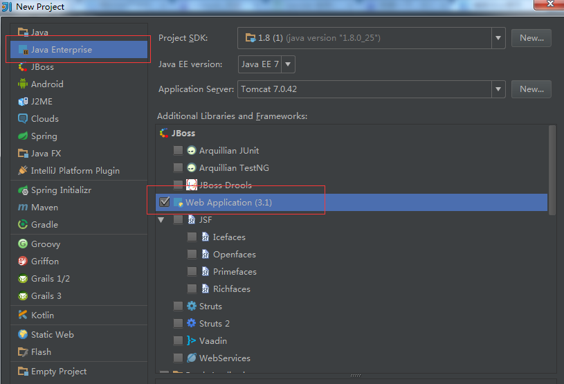 第二种方法)通过Java Enterprise创建,这个方法会自动导入Tomcat的servlet包