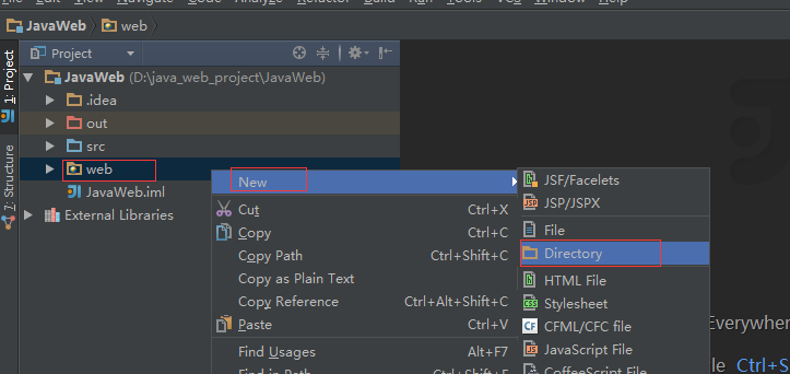 2.1在web目录下的WEB-INF下新建两个目录lib和classes