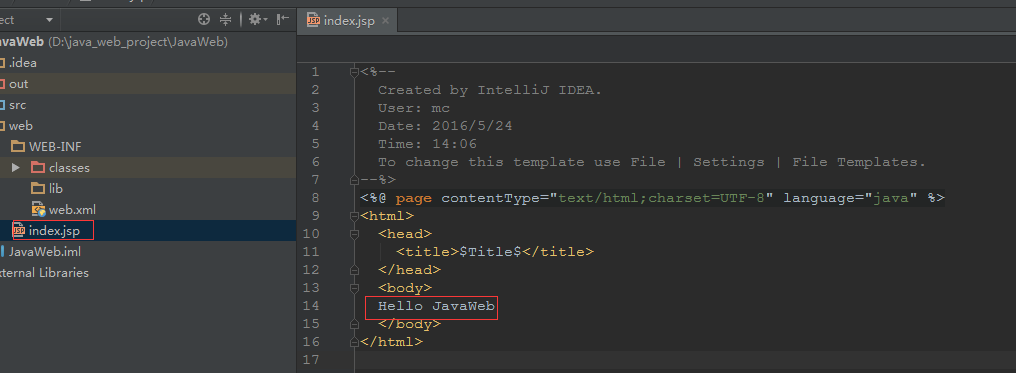 4.2 在index.jsp文件中的body之间添加要显示的内容,然后点击“运行”的绿色三角