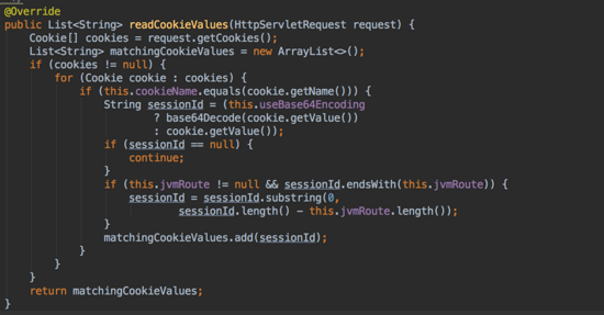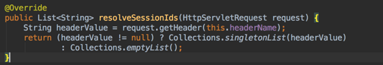 这段代码还是很有意思的,这里获取 sessionId 返回的是个列表。当然这里是 SpringSession 的实现策略,因为支持 session ,所以这里以列表的形式返回的。OK,继续来看如何解析 sessionId 的: