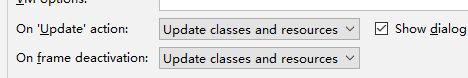 2、在Run-》Edit Configuration的On frame deactivation以及 On update action:选择 “update classes and resources”