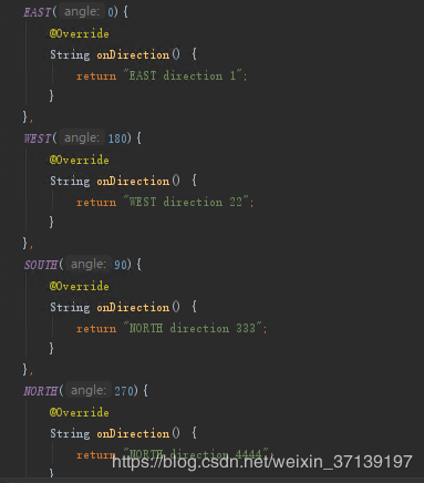 DirectionEnum.WEST.doSomeThing(); // 输出 doSomeThing Implement