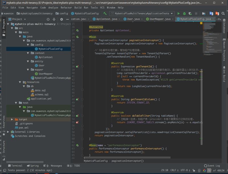 基础环境搭建完成,现在开始配置MybatisPlus多租户相关的实现。