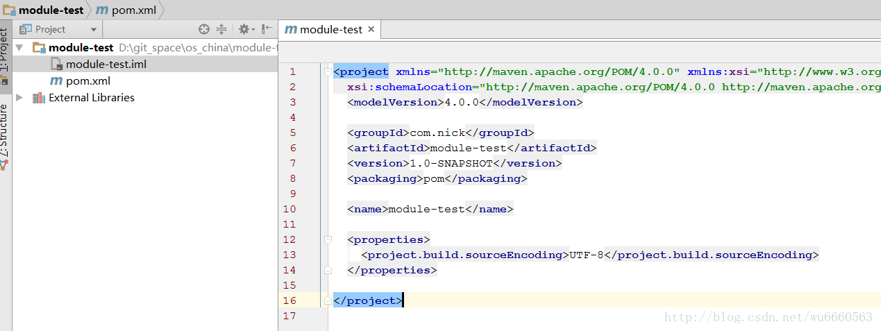<parent> <artifactId>module-test</artifactId> <groupId>com.nick</groupId> <version>1.0-SNAPSHOT</version> </parent>