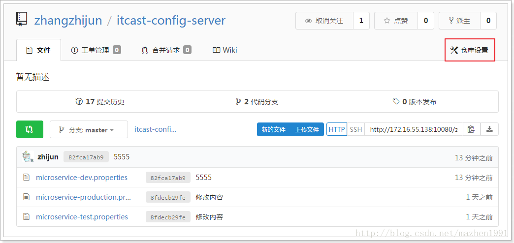 uri: http://172.16.55.138:10080/zhangzhijun/itcast-config-server.git