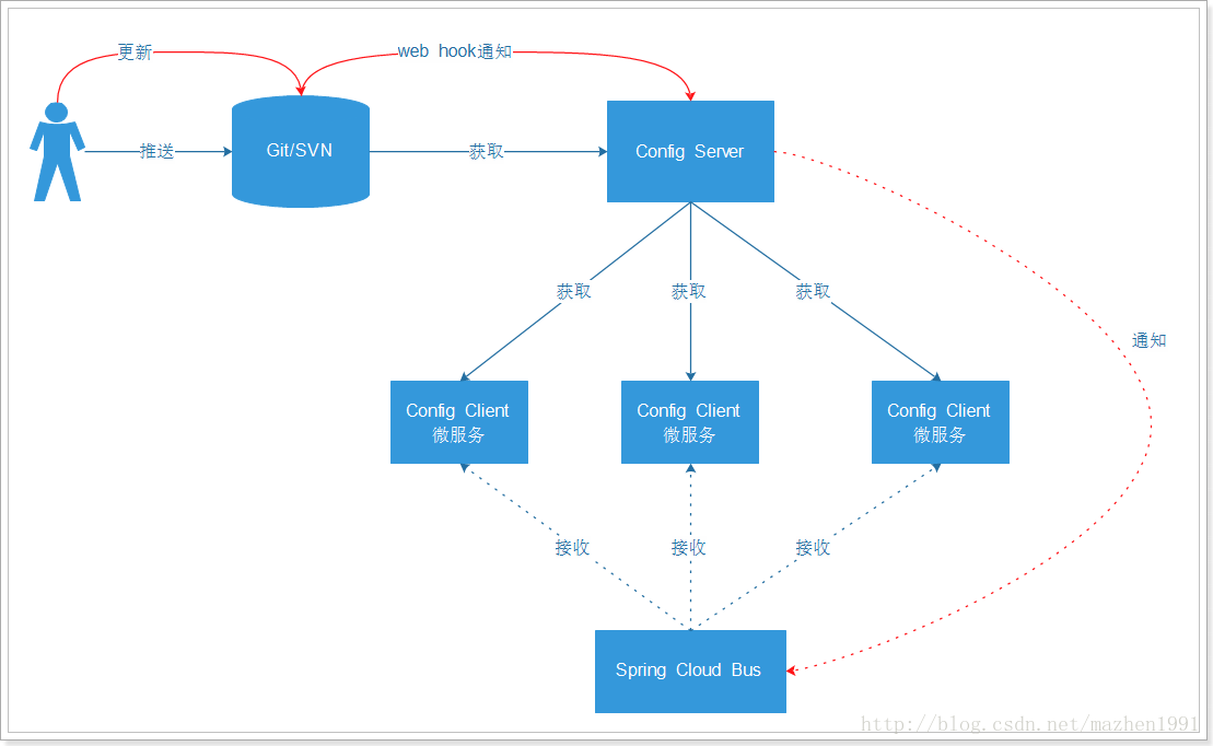 当一个系统中的配置文件发生改变的时候,我们需要重新启动该服务,才能使得新的配置文件生效,spring cloud config可以实现微服务中的所有系统的配置文件的统一管理,而且还可以实现当配置文件发生变化的时候,系统会自动更新获取新的配置。
