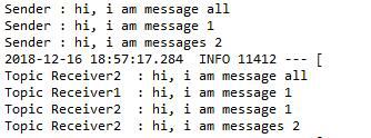 从上面的输出结果可以看到,Topic Receiver2 匹配到了所有消息,Topic Receiver1只匹配到了1个消息。