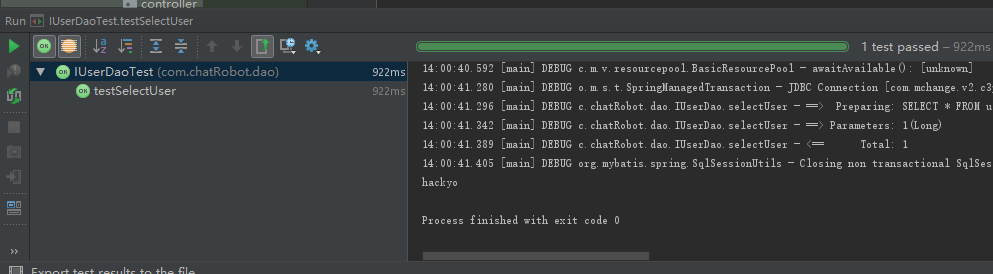 运行后结果应该是会在控制台输出id为1的用户名,没成功的话就找BUG去吧...