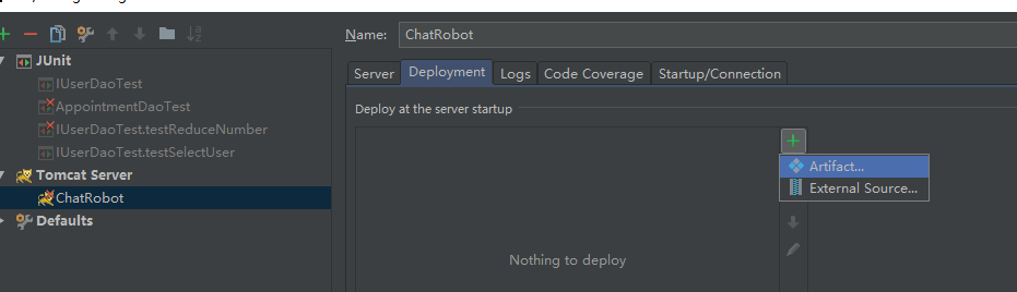 选中新建好的服务器,右边选择Deployment,点击加号-Atifact...