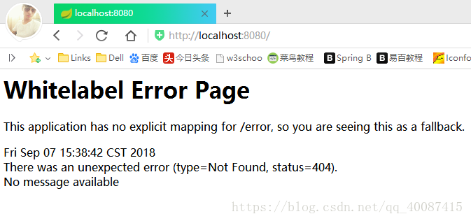 创建SpringBoot项目,启动后,默认的访问路径即主机IP+默认端口号8080:http://localhost:8080/