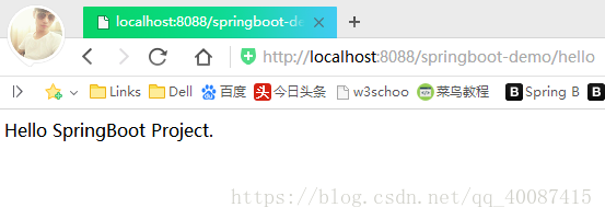 此时,我们就可以访问Controller层的接口了,如:http://localhost:8080/hello
