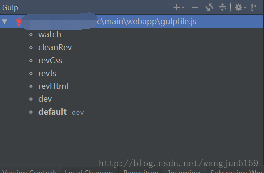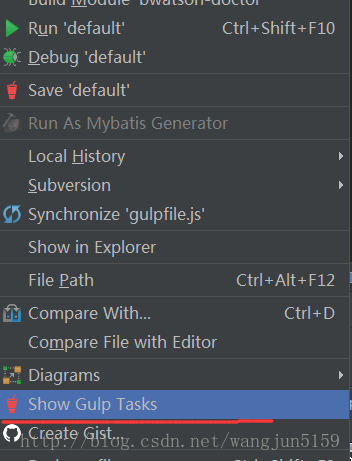 在工程的webapp目录下新建gulpfile.js,右击 show gulp tasks 就能出现定义的任务,双击就会执行任务