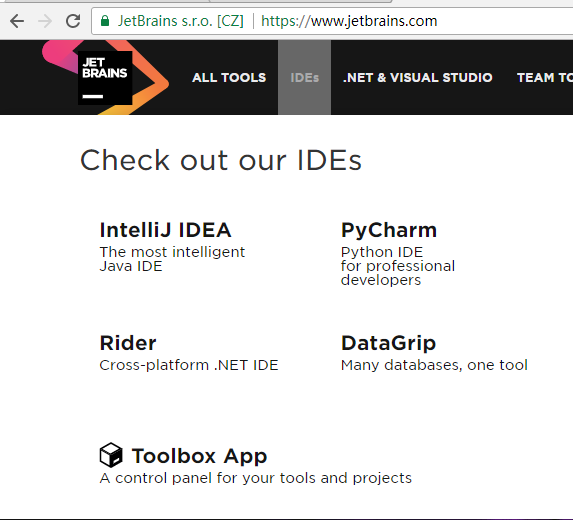 首先我们第一步当然是安装IntelliJ IDEA了,访问所属公司JetBrains的官网。