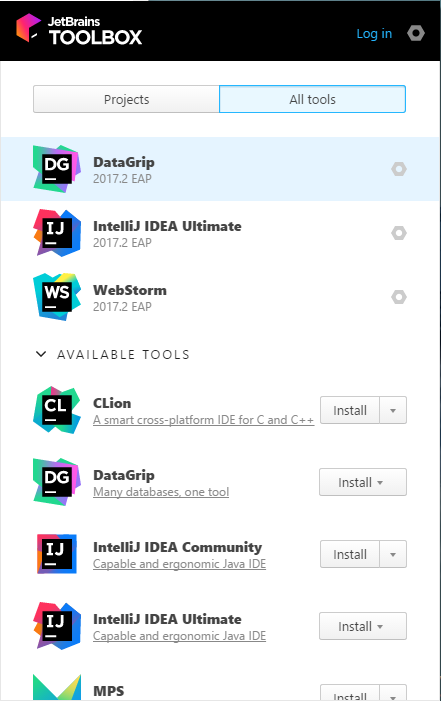 在IDE第一就能看到我们的主角IntelliJ IDEA,但我们并不是要直接下载IntelliJ IDEA。而是下载下面的Toolbox App。IntelliJ IDEA更新迭代的很快,Toolbox App是JetBrains家族的IDE的综合管理平台,可以让我们一键下载和升级IDE,免除后面繁琐的维护和升级操作。