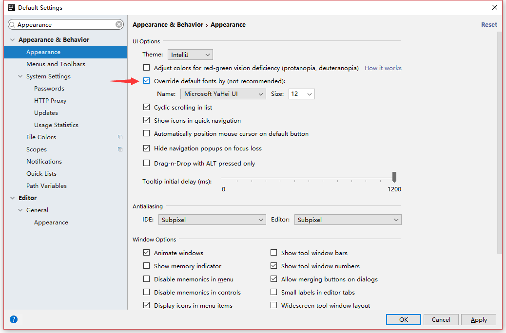 勾选并修改UI字体为Microsoft YaHei UI