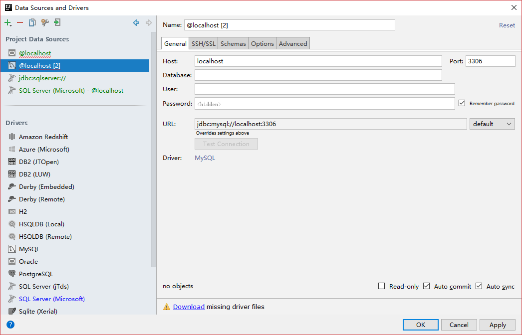 添加数据库时填写好各项连接信息,并点击下面的Download下载驱动,选择我们需要的Schemas