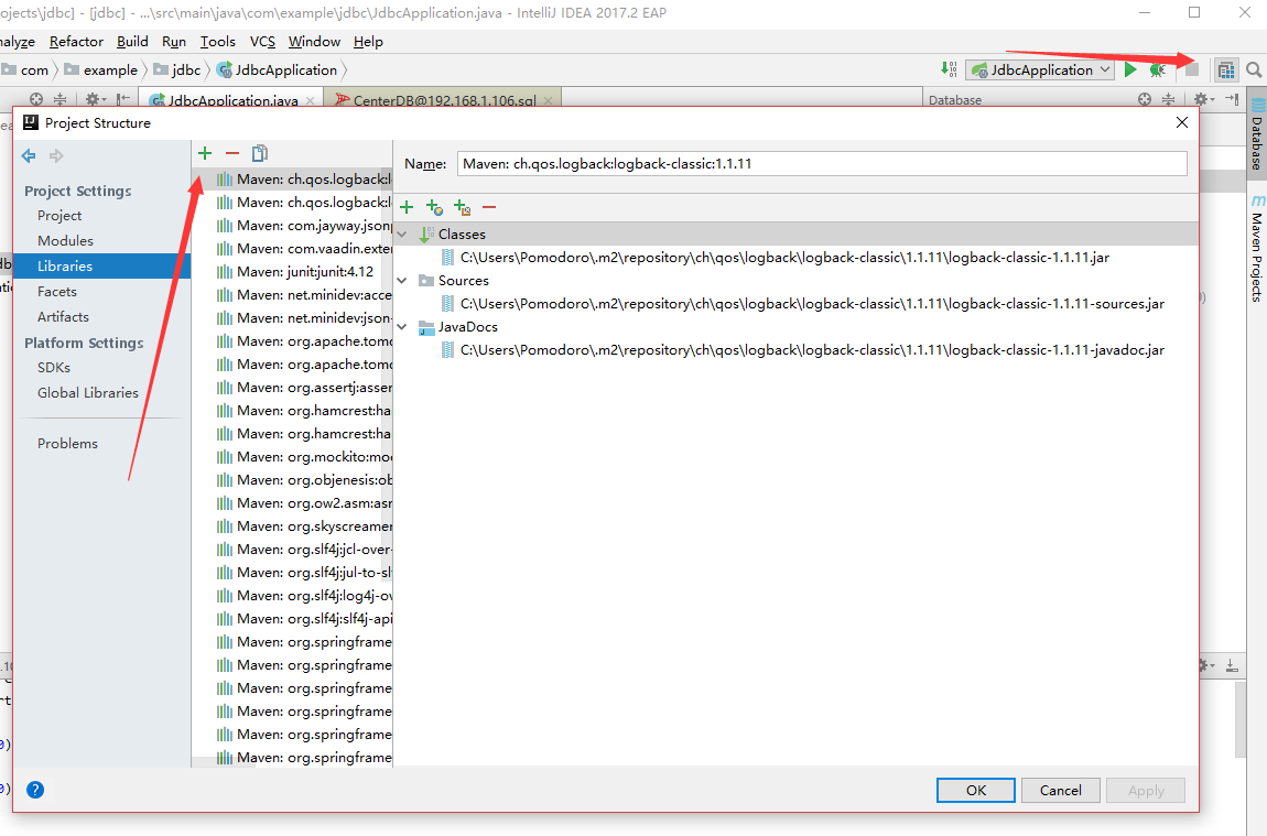 不同于Eclipse将Jar包放入目录即可使用,在Idea中还得将其配置到项目Library内