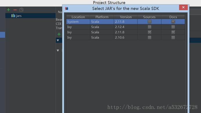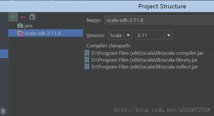 4 . 之后在libraries中点击+,选择scala sdk,这里选择系统版本的scala,为2.11.8版本,添加见下图
