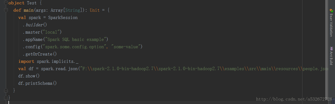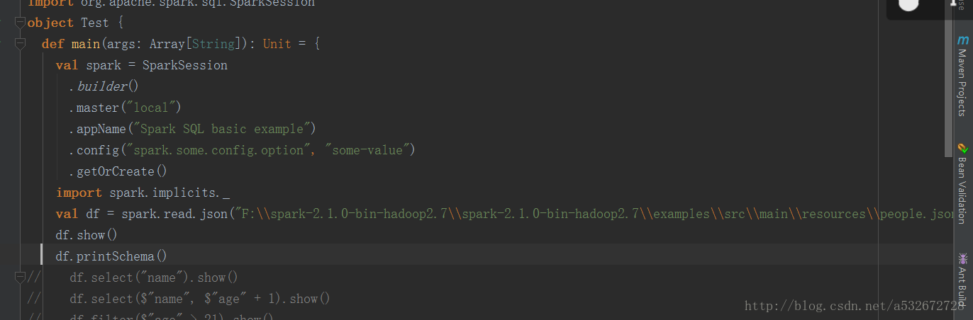 6 .现在该项目有了spark的jar和scala的sdk,之后创建一个scala文件进行测试,代码及运行结果见下图