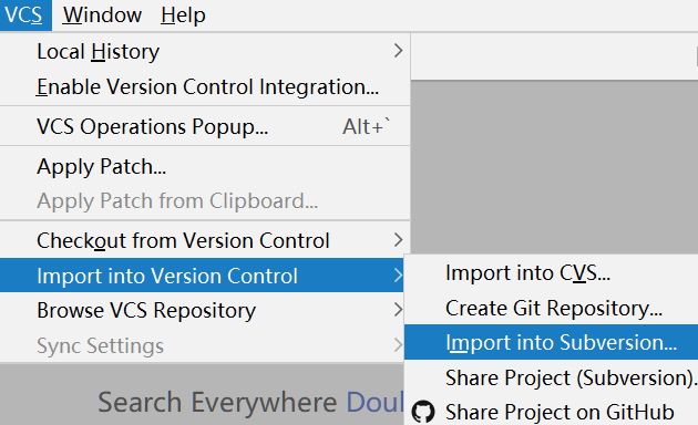 接下来如果你需要将本地新项目代码上传到代码仓库,可以通过VCS菜单导入: